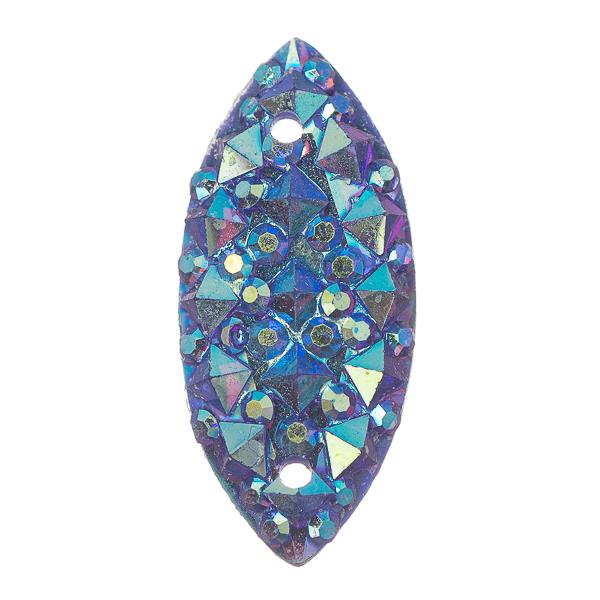 Description: Resin gummy spike navette stone. For application on fabrics, beading foundation, and craft project. Two hole sew-on stone.
