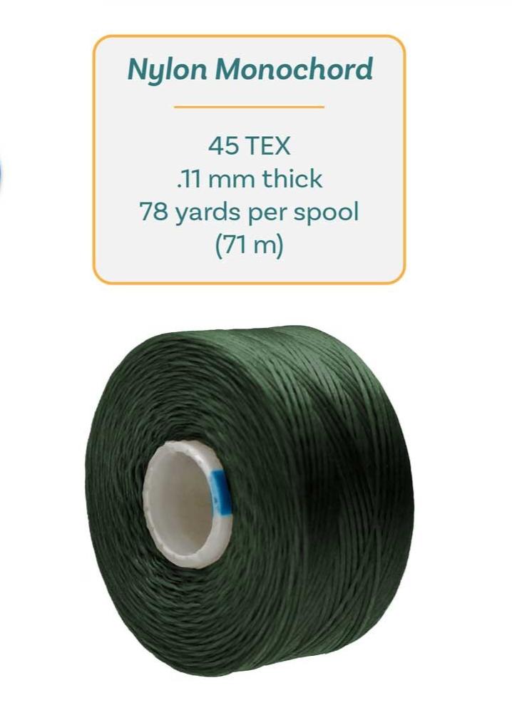 S-Lon beading thread is a durable, bonded nylon thread designed for strength and tangle resistance in bead weaving. With a diameter of approximately 0.11 mm, it handles well in tight patterns and intricate designs.