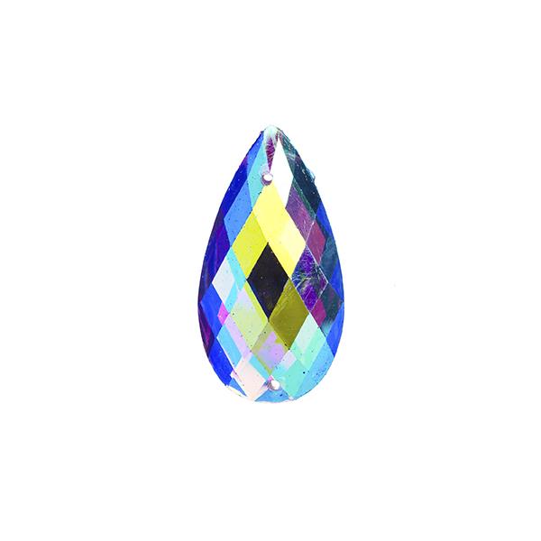 Description: Resin metalico tear drop stone. For application on fabrics, beading foundation, and craft project. Two hole sew-on stone.