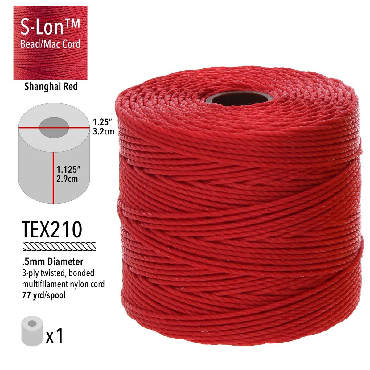 S-Lon Bead Cord .5mm Shanghai Red 77yd Spool