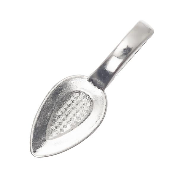 Description: Plated alloy metal bail glues onto back of pendant with "P" shaped loop sitting centered on top of pendant. For use on flat back pendant. Lead free, Nickel free, Cadmium free.