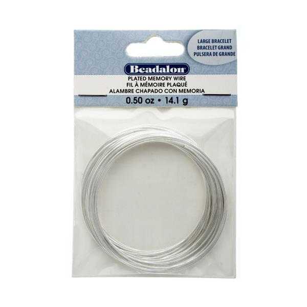 Description: Beadalon Plated Steel Memory Wire is a .025 inch thick, plated steel wire that retains is shape and coil form. Use Plated Steel Memory Wire when the wire color is needed for your Memory Wire design. Memory wire is stiff like a spring, that springs back into it's original form when expanded and released. Use only memory wire shears to cut this wire. Silver Plated Steel. .5 oz. - approximately 30 2 1/4 inch x 2 5/8 inch loops.