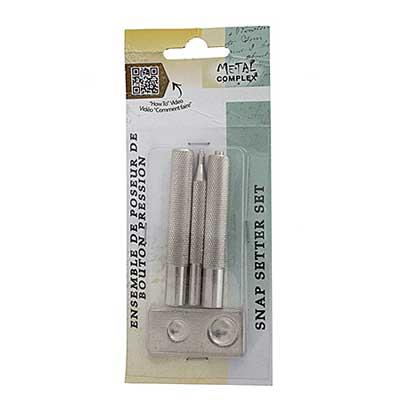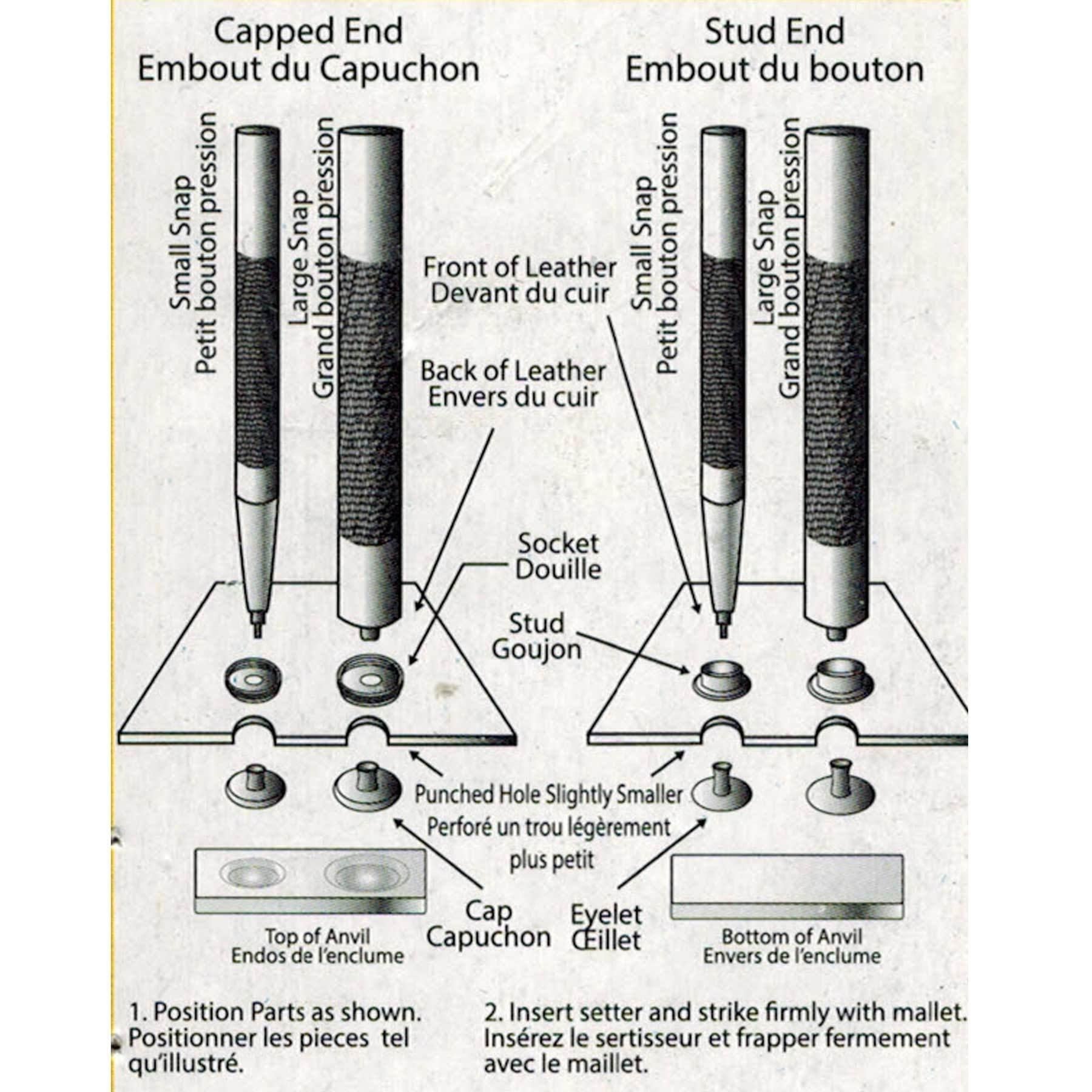 Description: This set is perfect for setting line 20 and line 24 snaps. Snaps can be applied to leather cuffs, bags and cases. Stainless Steel.