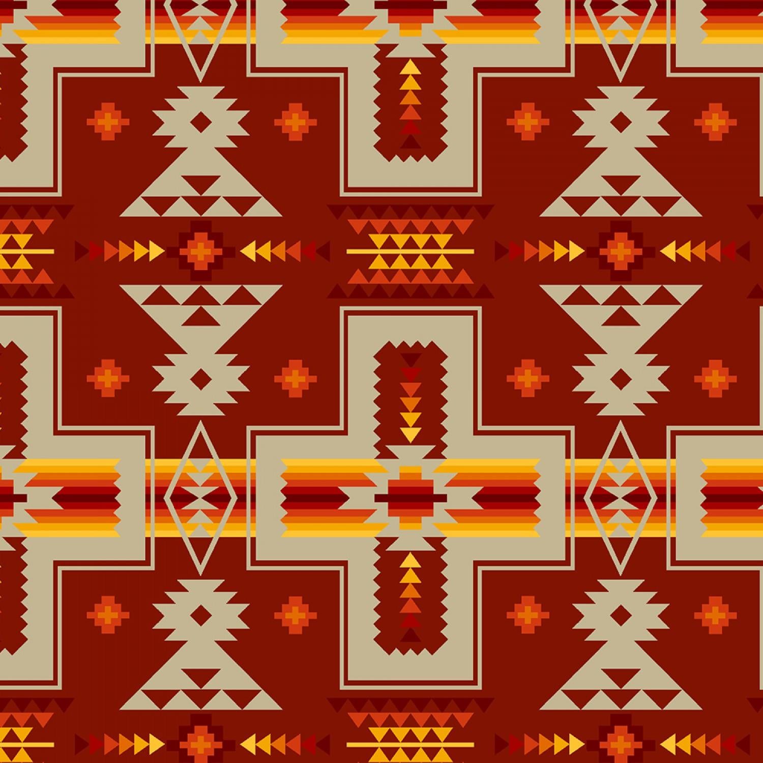 This cotton fabric features bold Southwestern cross motifs woven into striking geometric patterns, symbolizing balance, harmony, and cultural storytelling in a design that feels both timeless and powerful. Lightweight yet versatile, it is perfect for ribbon skirts, regalia accents, star quilts, and shawls, while also lending itself beautifully to tote bags, table runners, and wall hangings that celebrate heritage and tradition. Sold by the half yard; multiple quantities are sold in one continuous cut. Pre-wash and dry before sewing to prevent shrinkage. Machine wash cold with like colours; tumble dry low; warm iron.