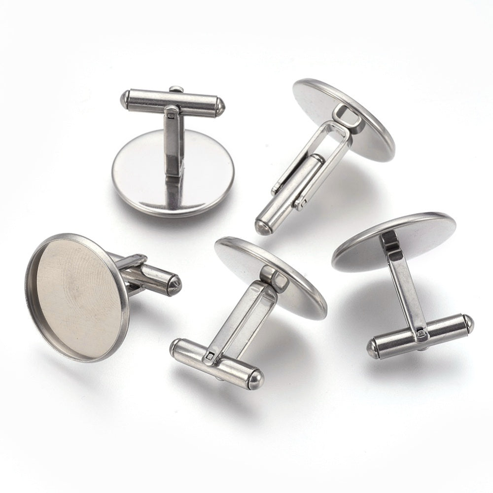 Description: Cufflink Blanks. Ready to be customized. Stainless Steel. Size: about 19mm long, 22mm wide, 22mm thick, tray: 20mm.