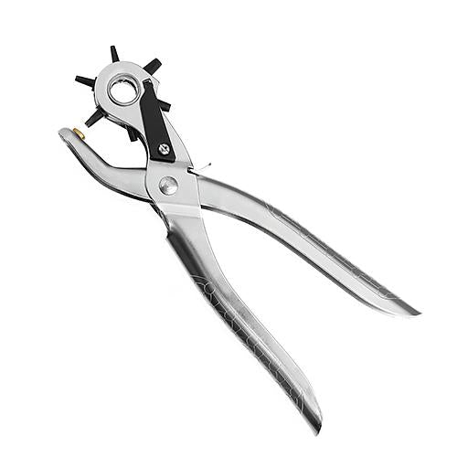 Description: Use for punching round holes into soft pliable materials, leather, canvas, rubber, plastic and cardboard. Tapered holes are hollow to prevent clogging. Strong tension spring for posture release. Grips coated for comfort and sure gripping. Hole punch sizes: 5/64", 3/32", 7/64", 1/8", 5/32", 3/16" (2.0, 2.5, 3.0, 3.5, 4.0, 4.5 mm)