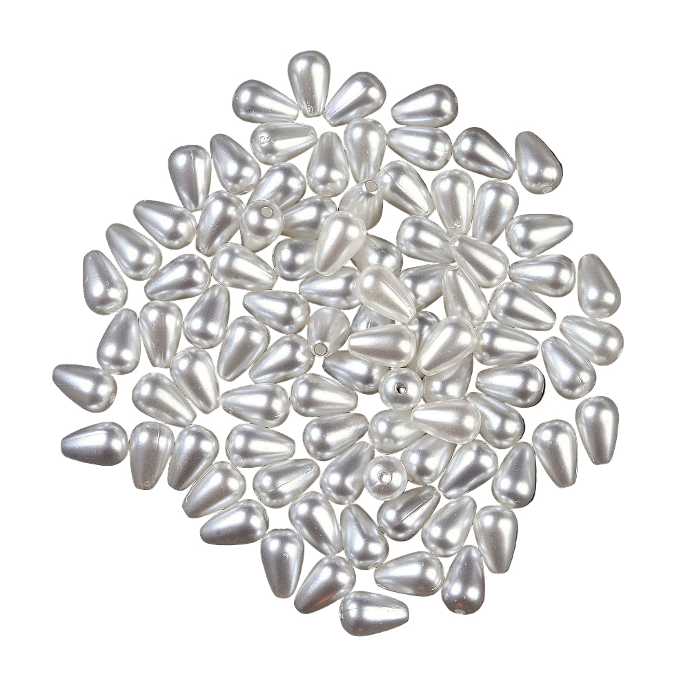 Teardrop Plastic Beads 10x7mm Pearl White 25g